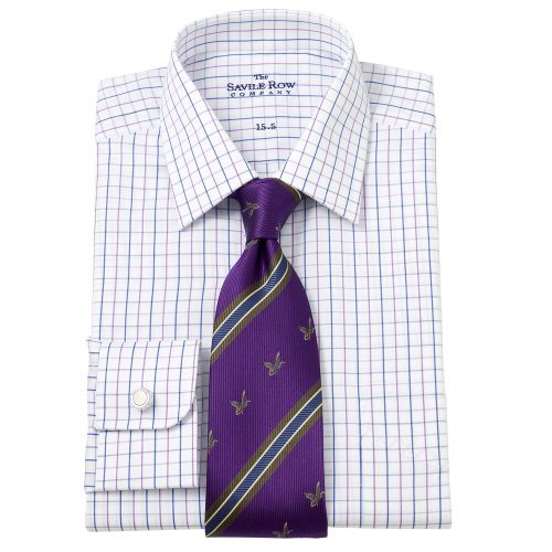 The Detailed Description of Savile Row Mens Navy Lilac White Tattersall Check Regular Fit Formal Dress Shirt Neck Size 19"Features