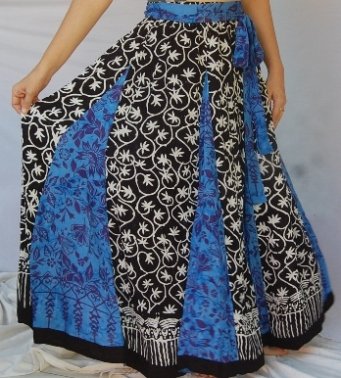 The vintage batiks used for these are simply incredible. These skirts are boho classics. And treasures.Designed with comfy elasticised waistlines and a flattering a-line form that's enhanced by triangular insets that add a progressive fullness to the skirt. These are full-length and they have a band of contrasting fabric that trims the skirt at the hem.Made up in a patchwork potpourri of the loveliest vintage rayon batiks. The fabric is soft and flowing and the colors, patterns and texture of the fabric are just joyously beautiful.Treat yourself to a real boho classic. Beauty like this will never be out of style.