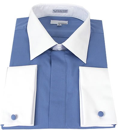 The Detailed Description of Modena Mens Cadet Blue White French Cuff Dress Shirt - Size 16 34/35Features